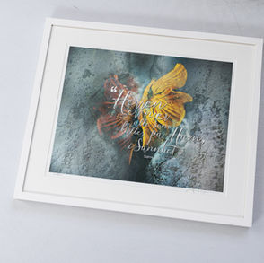 Våre eksklusive signerte Fine Art Prints innrammet bak passepartout i svarte eller hvite galleri-rammer. OBS: Glass sendes ikke i posten.